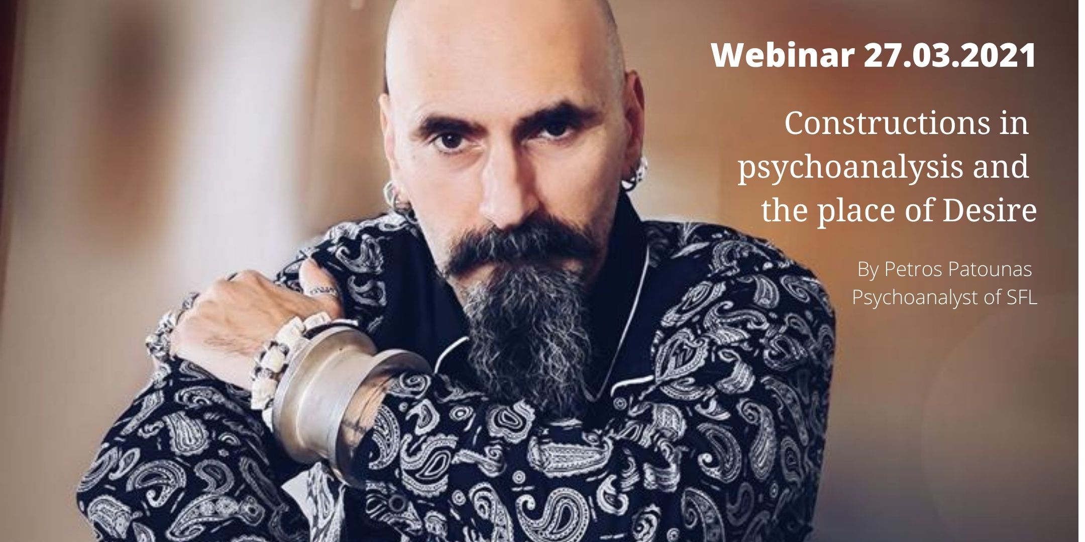 On 27th of March 2021 Petros Patounas, psychoanalyst of the School of the Freudian Letter, will present a seminar entitled 'Constructions in psychoanalysis and the place of Desire'.